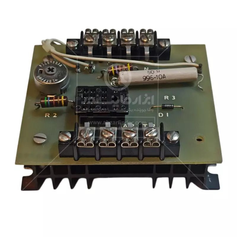 برد کنترلی الکترونیکی یک ماژول کنترلی الکترونیکی صنعتی قدیمی (آنالوگ) است که معمولاً در دهههای گذشته در سیستمهای اتوماسیون، تابلوهای برق، ماشینآلات صنعتی، آسانسورها، خطوط تولید و تجهیزات کنترلی استفاده میشد. هدف اصلی آن کنترل، تحریک یا زمانبندی یک مدار یا رله، پردازش یک سیگنال ورودی و ایجاد خروجی کنترلی می باشد. این نوع بردها قبل از رایج شدن PLCها، نقش مغز کنترلی سیستمها را داشتند. این برد مثل یک کنترلکننده هوشمند ساده عمل میکند. از کاربردهای رایج این برد میتوان به تأخیر در روشن یا خاموش شدن، کنترل رلهها، مدار ایمنی، کنترل موتور یا بار و تجهیزات قدیمی صنعتی اشاره کرد. به طور خلاصه این برد یک ماژول کنترلی صنعتی آنالوگ است، برای کنترل زمان، تحریک یا رله استفاده میشده، ساده، قابل اعتماد و مناسب محیطهای صنعتی و نسل قبل از PLC و کنترلرهای دیجیتال امروزی می باشد.