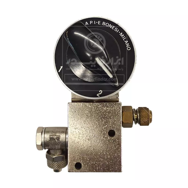 شیر پنوماتیک/هیدرولیکِ دو وضعیتی Bonesi API با عملگر دستی چرخشی است. کاربر با چرخاندن دستگیره (Knob) مسیر هوای فشرده را باز یا قطع میکند. شیر دو-وضعیتی (two-position) بهمعنی این است که عضو متحرک (سولنوئید/پاپت/اسپول) تنها دو وضعیت پایدار یا قابلدستیابی دارد.