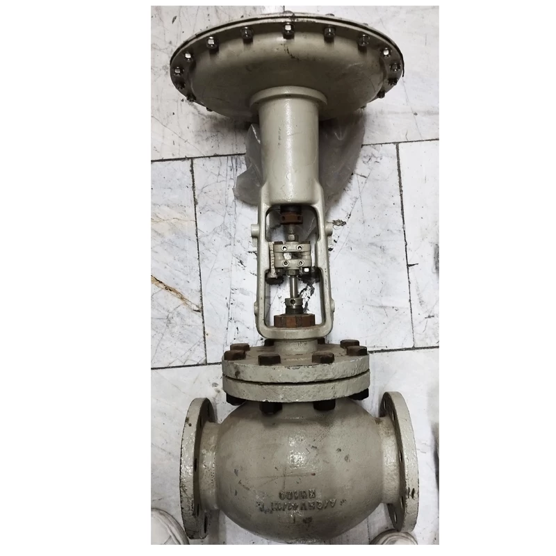 کنترل ولو اکارت با اکچویتور مدل 6173195 یک کنترل ولو گلوب فلنجی که به یک اکچویتور پنوماتیکی دیافراگمی Eckardt متصل شده است. اکچویتور در قسمت بالایی با محفظه گرد و پیچهای محیطی مشخص است که نشاندهنده طراحی کلاسیک اکچویتورهای پنوماتیکی اکارت میباشد.