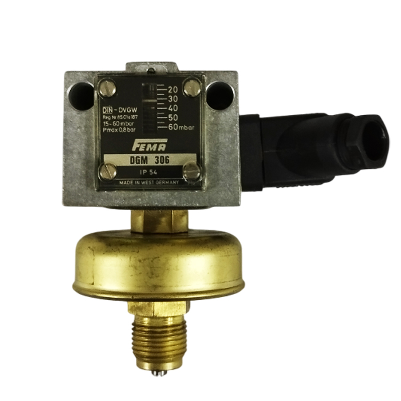 پرشر سوئیچ FEMA مدل DGM 306 یک سوئیچ کنترل فشار گاز با دقت بالا و عملکرد مطمئن است که در سیستمهای گازسوز، مشعلها، بویلرها و تجهیزات گرمایشی مورد استفاده قرار میگیرد. این دستگاه ساخت آلمان بوده و به عنوان یکی از محصولات پرطرفدار برند معتبر FEMA شناخته میشود. محدوده عملکرد این مدل بین 15 تا 60 میلیبار (mbar) بوده و برای پایش و کنترل فشار گاز در محدودههای پایین به کار میرود. حداکثر فشار قابل تحمل آن 0.8 بار است. طراحی مقاوم و دقیق این سوئیچ، آن را برای محیطهای صنعتی و تأسیسات حساس به نوسانات فشار بسیار مناسب میسازد.