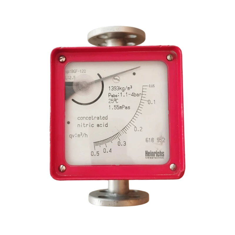 فلومتر عقربه ای هنریچ سری BGF برای اندازه گیری جریان محصولات مایع یا گاز و بخار در لوله ها مناسب است. نشان دهنده جریان حجمی یا جرمی لحظه ای در واحد زمان میباشد. فلومتر عقربه ای که بر اساس اصل اندازه گیری شناوری عمل می کند. موقعیت عمودی وابسته به جریان شناور در لوله اندازه گیری توسط یک سیستم اتصال مغناطیسی درمقیاس به صفحه نمایشگرمخابره شده است. فلومتر با جریان از پایین به بالادر یک لوله عمودی نصب شده است. فلومتر هنریچ مدل BGF-120 مخصوص اندازه گیری آب های اسیدی میباشد.