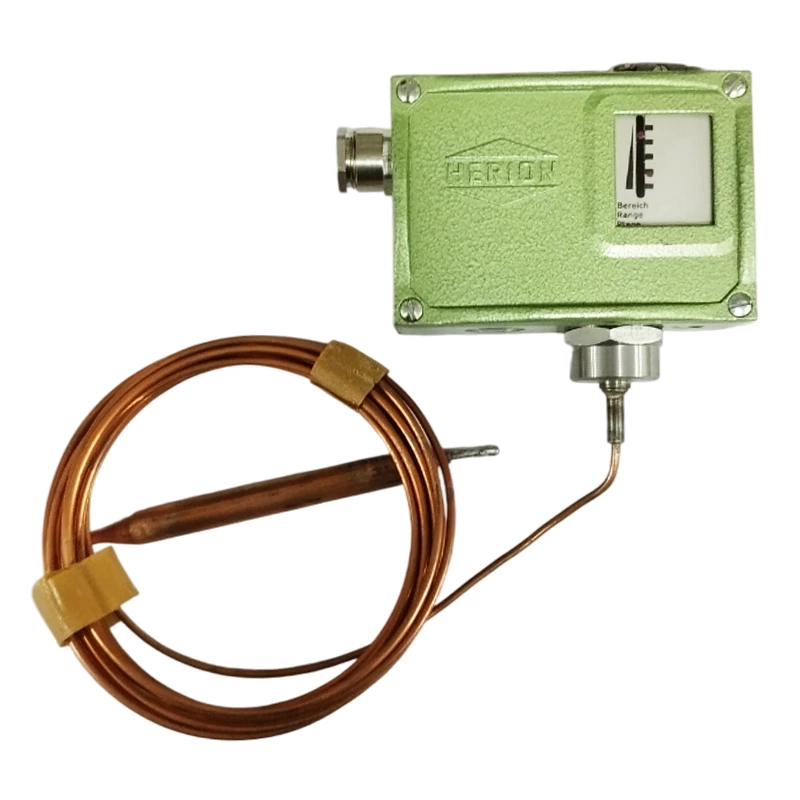 ترموسوئیچ HERION مدل 0891723 یک سوئیچ دما (Temperature Switch) دقیق و مقاوم است که برای کنترل، پایش و حفاظت سیستمهای حرارتی و صنعتی طراحی شده است. این تجهیز با دنبالهی استیل ضدزنگ و طراحی مقاوم در برابر لرزش و دماهای بالا، گزینهای ایدهآل برای صنایع حساس به تغییرات حرارتی محسوب میشود. این سوئیچ ها به گونه ای طراحی شده اند که در مواقعی که دما از حد معینی بالاتر می رود، دستگاه را خاموش و زمانی که دما از حد مشخص شده پایین تر بیاید دستگاه را روشن می کند. سوئیچ ها دما را در نقطه تنظیم یا ست پوینت نگه می دارند و مانع از ضربه زدن و خسارت به وسایل الکتریکی می شوند.