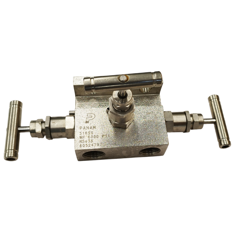 منیفولد ولو PANAM از جنس استنلس استیل 316 با طراحی سهشیری (3-Valve Type) برای کنترل و تنظیم فشار در سیستمهای ابزار دقیق و فرآیندهای صنعتی طراحی شده است. این شیر با تحمل فشار تا 6000 PSI، مناسب برای کاربردهای فشار بالا، گاز و سیالات خورنده میباشد.