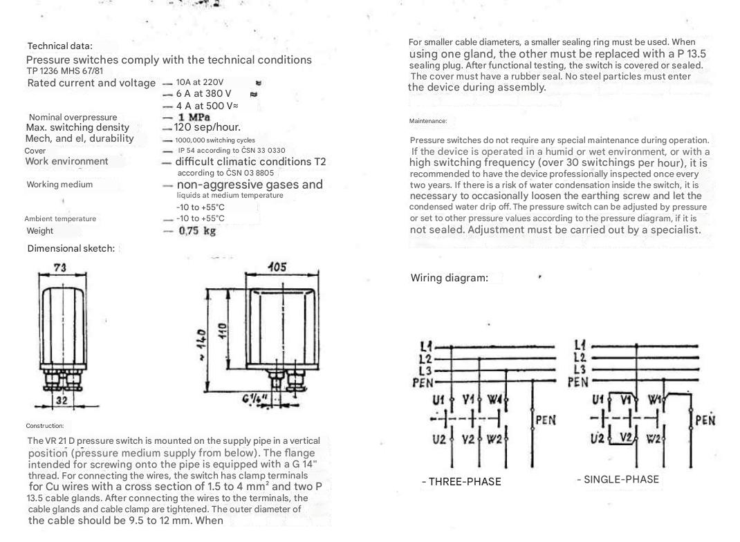 پرشر سوئیچ TLAKOVY مدل VR21D (TLAKOVY VR21D Pressure Switch)، سوئیچ فشاری است که در صنعت کاربرد داشته مناسب مناسب قطع و وصل کمپرسور هوا میباشد و به همین دلیل جزو قطعات پر کاربرد در محیط های تحت فشار محسوب می شود. پرشر سوئیچ TLAKOVY ساخت کشور چک اسلواکی بوده و از کیفیت بسیار بالایی برخوردار می باشد.